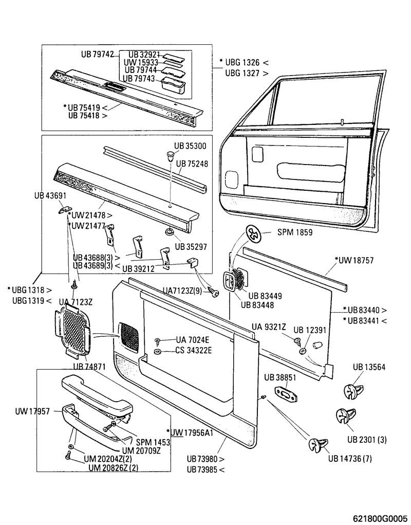 7 UBG1327 ASSY WAISTRAIL FRONT DOOR LH