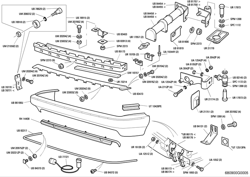 | 66 | UB86174 | MOUNTING BLOCK SIDE FIXING REAR BUMPER RH | |