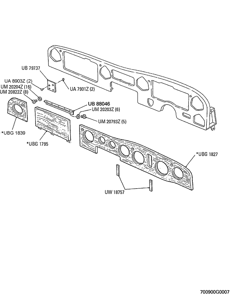 | 6 | UB88046 | MOUNTING BRACKET PASSENGER AIR BAG FACIA PANEL | |