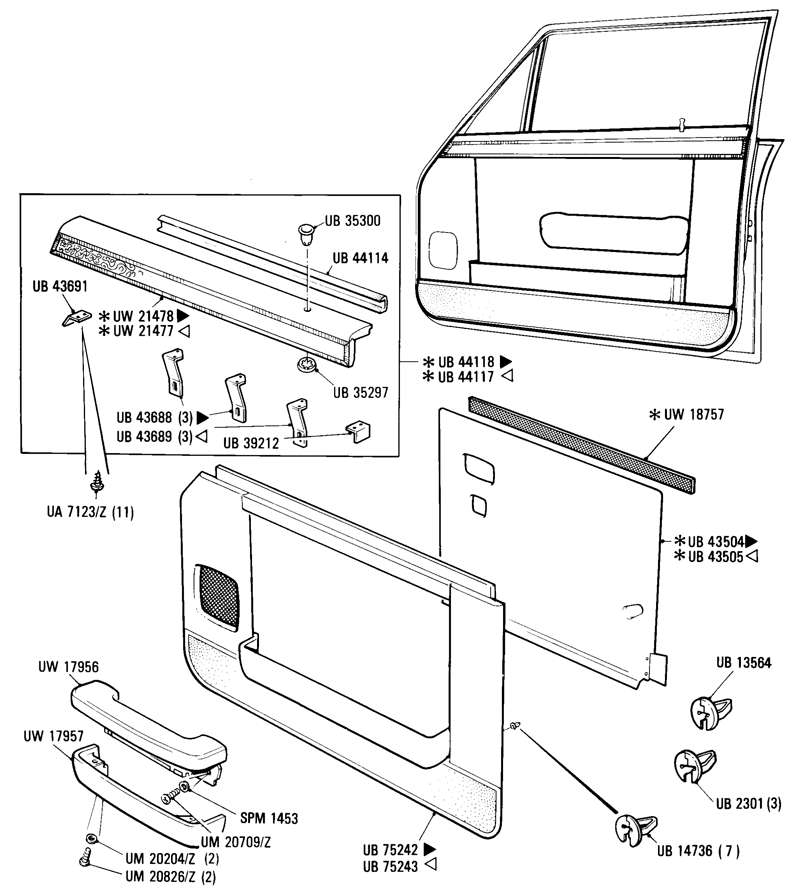 UB43502 ASSY DOOR INNER TRIM RH LHD